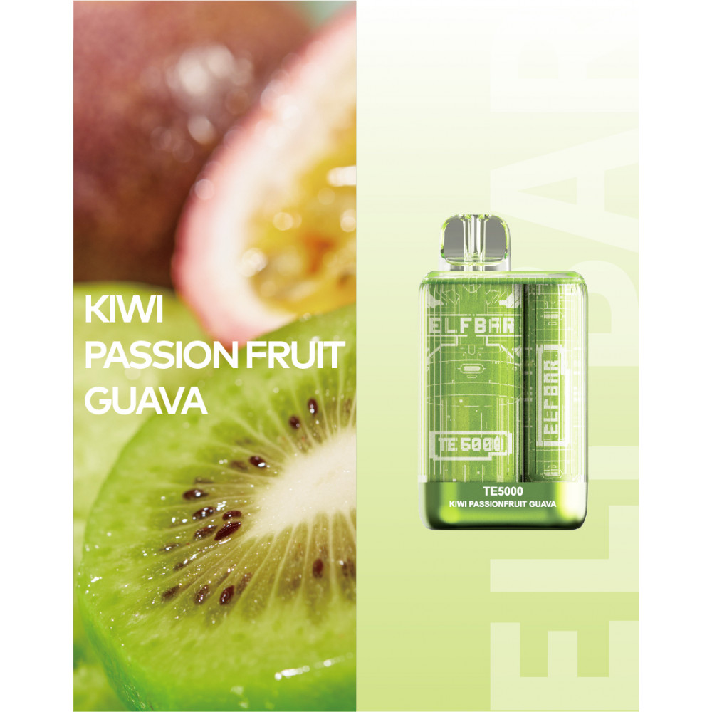 | Elf Bar видыTE 5000 | Elf Bar вкусыКиви Маракуйя Гуава | Elf Bar количество в блоке10 шт |