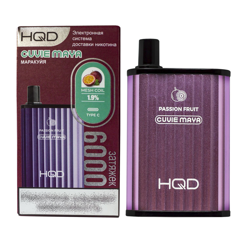 | HQD видыCuvie MAYA (Куви Мая) | HQD вкусыМаракуйя | HQD количество в блоке5 шт |